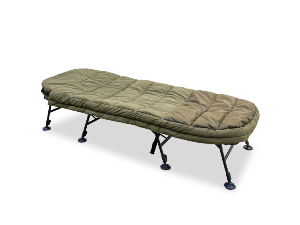 5-season Bedchair není jen super pohodlné osminohé lehátko s dokonalou plochou konstrukcí, je to také chytře promyšlený spací systém, ve kterém je přímo integrován kvalitní spací pytel a v závislosti na ročním období ho lze volitelně sejmout pomocí zipu. Perfektní systém spaní pro všechna roční období! Část spacáku v oblasti nohou je vyrobena z omyvatelného nylonu 210D. Navíc je navržen tak, aby byl prostorově nenáročný na přepravu a u vody ho lze extrémně rychle postavit.Detaily lehátka: