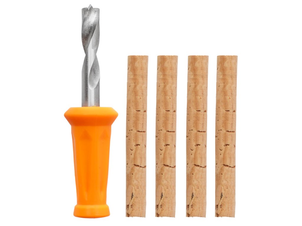 Na bahnitých, rostlinami posetých dnech vod je velmi důležité nástrahu odlehčit a použít plovoucí nástrahy.Tato sada obsahuje vrták s nerezovou rukojetí a korkové tyčinky, které dokonale zapadnou do vytvořeného otvoru. S jeho použitím lze odlehčit i těžké boilie během několika vteřin.