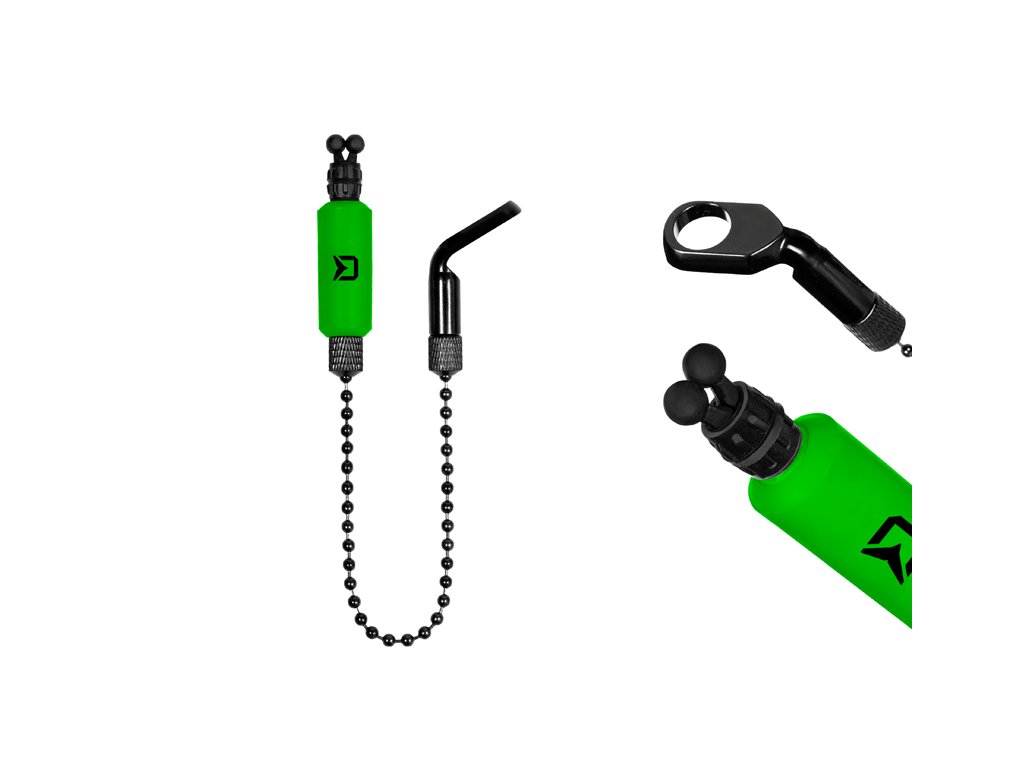 Delphin Rota Chain Green je stylový řetízkový indikátor záběru.Jeho tělo válcového tvaru je vyhotovené z extra silného a odolného plastu. Pro upevnění k vlasci byl použit spolehlivý mechanismus se systémem nastavení přítlačné síly. Právě tento systém zaručuje, že Rota Chain Green bude dokonale fungovat s jakýmkoli běžně prodávaným průměrem vlasce či šňůry. Kuličkový řetízek je s kovovým ramínkem spojen pomocí závitu, což umožňuje ponechání celého ramínka na vidličce nebo stojanu. Opětovné připevnění indikátoru je tak otázkou několika vteřin. Na boční straně se nachází drážka (28 mm x 4 mm), kterou je možné využít k přilepení věčného světla.