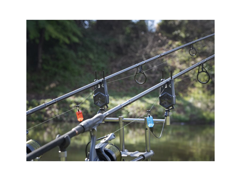 Signalizátor je vybaven třemi tlačítky. Pomocí tlačítka uprostřed je možné jej zapnout, resp. vypnout. Při delším podržení středového tlačítka se sepne podsvícení záběrového kolečka, což vytváří ve tmě velmi pěkný vizuální efekt a zároveň slouží jako noční dioda, která v noci umožňuje snadnou detekci umístění prutů. Krátkým mačkáním středového tlačítka je navíc možné zvolit jeden z osmi tónů. Pro zpětný záběr, resp. „padák“ budete upozorněni odlišným tónem signalizace. Pomocí tlačítka umístěného na signalizátoru vlevo (V) navolíte požadovanou hlasitost, včetně tichého módu. Tlačítko napravo (S) umožňuje vybrat jednu z 5 úrovní citlivosti. Součástí signalizátorů jsou odnímatelné snag gears, které se postarají o to, aby prut při prudkých záběrech v žádném případě nemohl „vyletět“ ze signalizátoru.