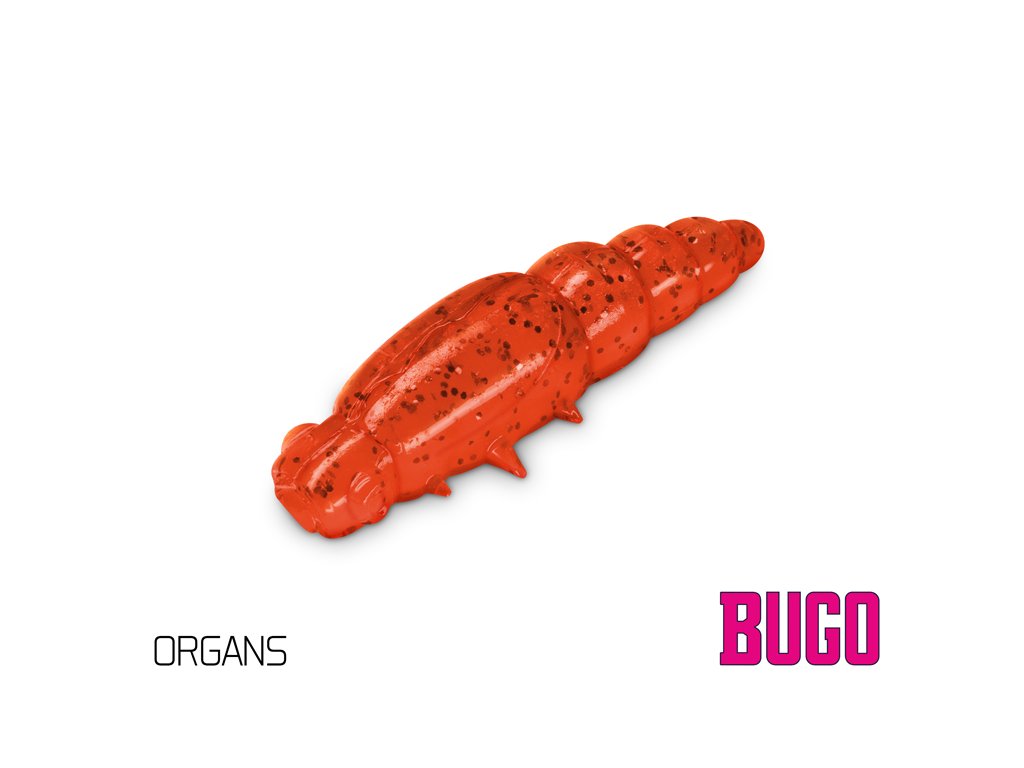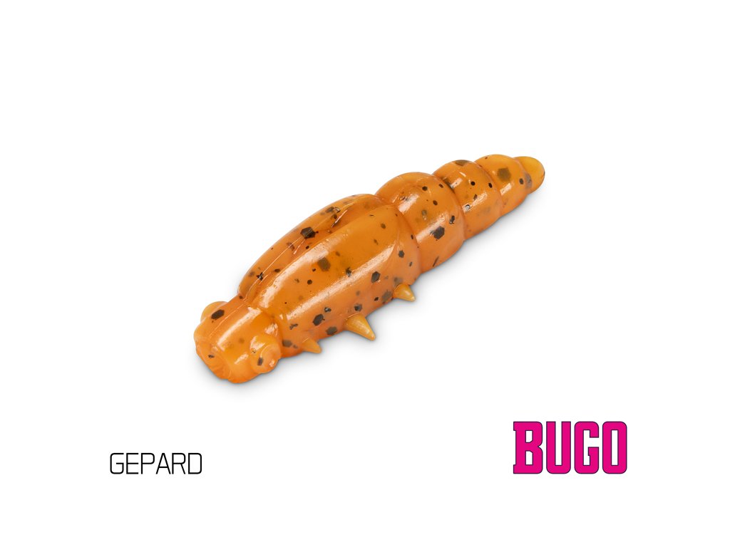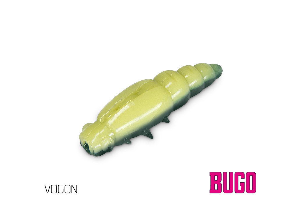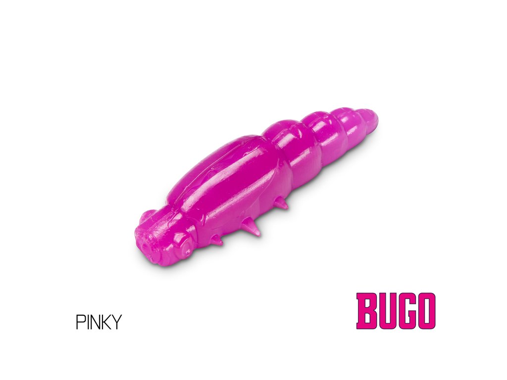 Bugo je jedinečným modelem měkkých nástrah značky Delphin, při kterých jsme použili unikátní plovoucí Fexifloat materiál, vyznačující se velmi vysokou poddajností a pružností, čímž představuje pro dravce naprosto neodolatelné sousto. Při vývoji nástrahy jsme se inspirovali přirozenou potravou dravých ryb, v tomto případě zejména larvou vosy. Naši designéři si dali záležet zejména na detailech jako jsou oči nebo zárodky křídel. Díky novému materiálu nástraha disponuje také dvěma velmi efektivními vlastnostmi. První je neuvěřitelná pružnost materiálu, což zamezí poškození nástrahy i po více záběrech a zdolaných rybách.Druhá významná vlastnost materiálu je nasákavost aroma. Díky tomu, zejména při lovu pstruhů dochází k opětovnému ataku nástrahy ze strany dravce. Při jakémkoli stlačení dochází k uvolňování výrazného sýrového aroma, které rybu zaujme a přinutí ji k opětovnému, agresivnějšímu záběru.