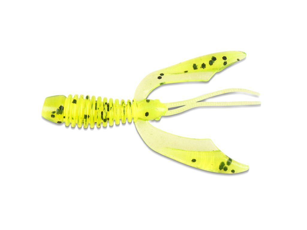 Imitace malého raka v životní velikosti. Zvláštní tvar klepet má při práci nástrahy ve vodě za následek značně přirozený pohyb. Další funkci, kterou velká klepeta plní je nadlehčování ráčka, což má za následek, to že nástraha při dopadu na dno, stojí vždy ve vertikální poloze, to je velmi důležitá vlastnost. Taková nástraha se rybám ze dna sbírá lépe než nástraha, která leží celou plochou na dně. Ryby ji přijímají s absolutní důvěrou a hlavně ji dobírají, pokud to netrefí správně.