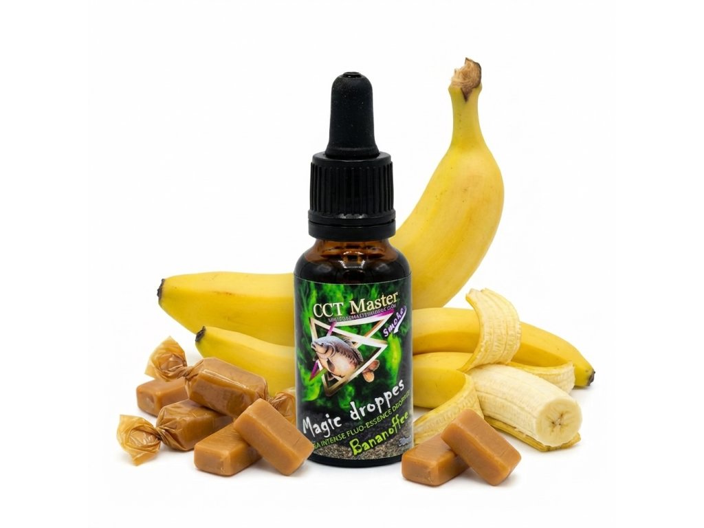 Varianta BANANOFFEE je mistrovským spojením dvou fenomenálních atraktorů: pronikavého, esterového banánu a lahodně krémového, podmanivého toffee (karamelu). V podání CCT Master Magic Drops se nejedná o pouhou "vůni", ale o sofistikovaný potravní spouštěč, který cílí na přirozenou touhu kaprů po vysokoenergetické potravě.