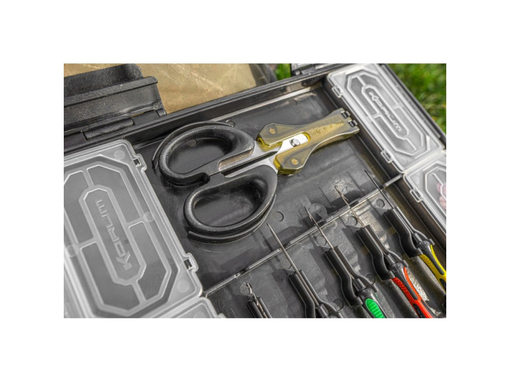 dodáváno s nástroji pro práci s nástrahou, nůžkami, 4přihrádkovým BITS BLOX a RIG BLOX