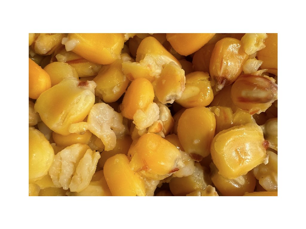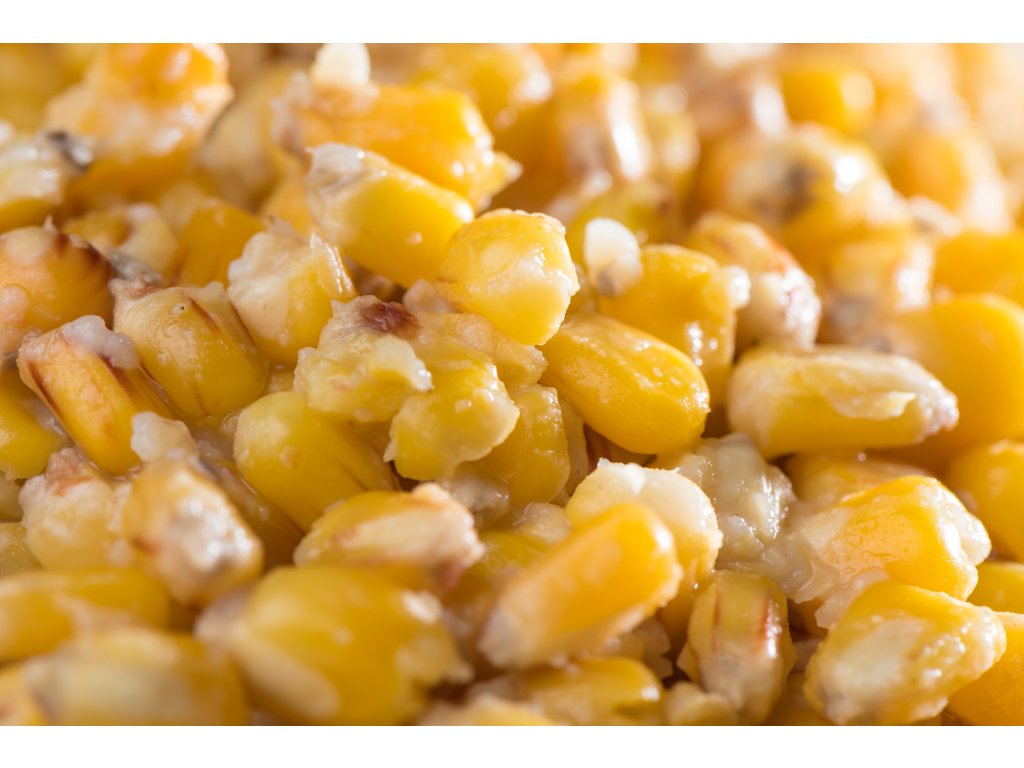 Zrna z pečlivě vybraných odrůd kukuřice, vařená v páře. Tento nejšetrnější způsob tepelné úpravy zachovává přirozenou chuť a vůni. Zároveň nedochází ke ztrátě živin a obsažených atraktorů, jako je tomu při vaření ve vodě. Má jemně nakyslou chuť, způsobenou přidáním malého množství kyseliny mravenčí. Ta působí jako atraktor pro ryby a zároveň plní funkci šetrného přírodního konzervantu.Kukuřice je pomocí speciální technologie balena ve vakuu což zajišťuje dlouhou trvanlivost při zachování maximální čerstvosti a atraktivity. Vakuum zároveň zajištuje maximální absorpci přidaných esencí.