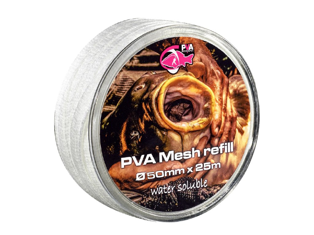 Přinášíme ekonomicky výhodné balení náhradní PVA micro-mesh punčochy v průměru 50 mm a návinu 25 m. PVA náhrady jsou vhodné k doplnění punčochy na prázdný tubus. PVA punčochy jsou pletené z kvalitních japonských vláken formou hustého micro-meshe.