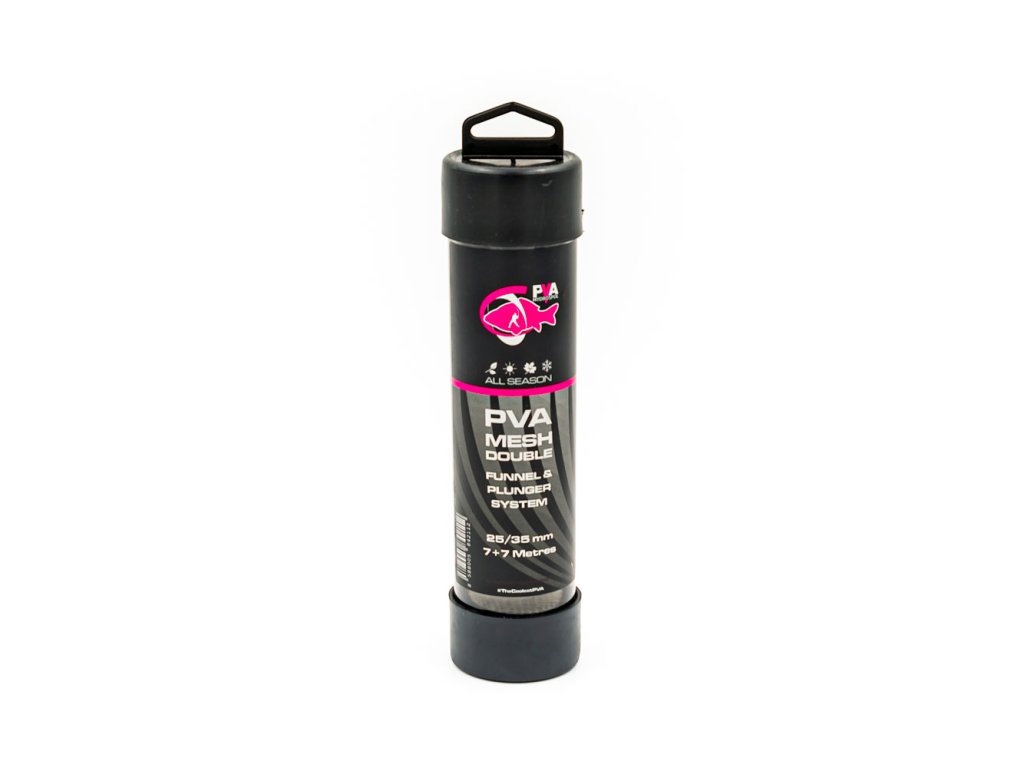 Prvotřídní PVA punčocha včetně tubusu a pěchovače. Evropský výrobce PVA produktů společnost PVA Hydrospol Vám přináší double systém 2V1 s micro-mesh síťkami 25 mm a 35 mm v jednom tubusu. Skvělá varianta pro rybáře, kteří používají oba průměry punčoch, jsou nyní dostupné ve výhodném balení.