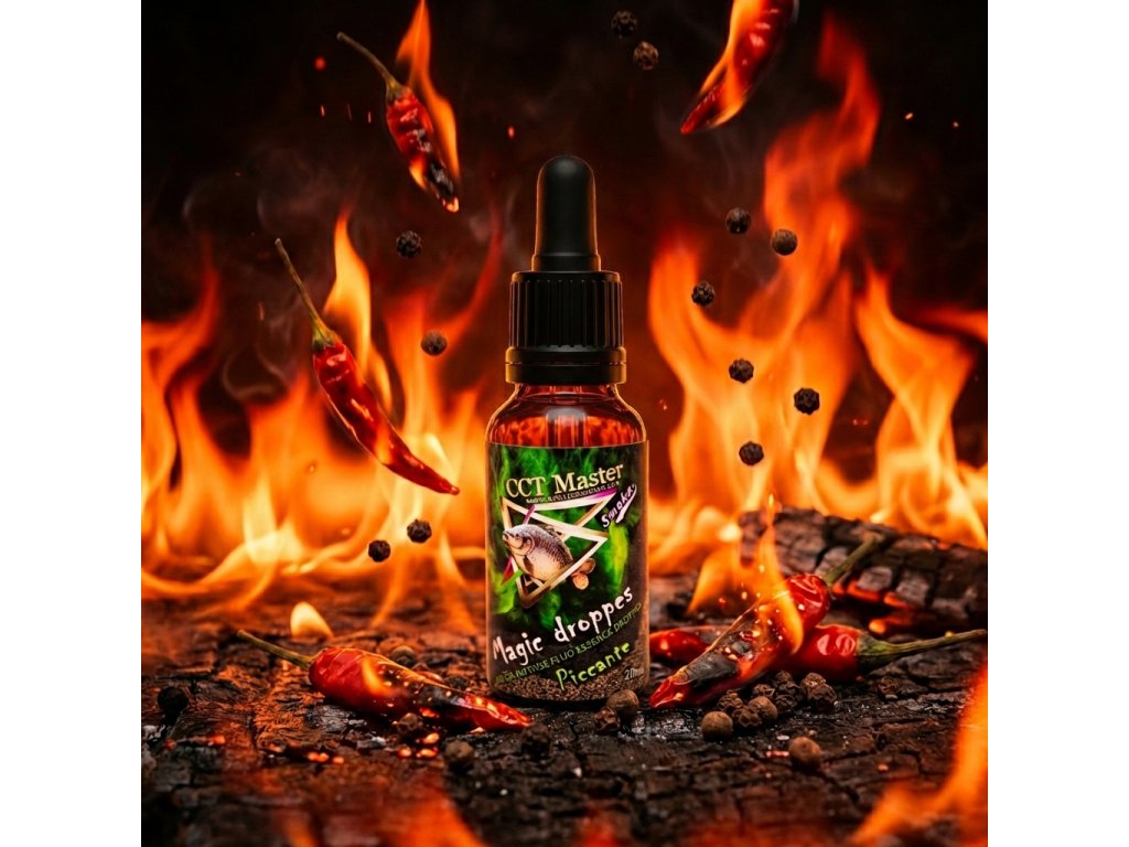 Varianta Picante z řady Magic Drops představuje koncentrovaný extrakt z těch nejúčinnějších pálivých složek, které kaprařský svět zná. Nejedná se o sladkou esenci, ale o ostrou, kořeněnou "bombu" určenou k okamžité stimulaci ryb. Tento produkt v sobě kombinuje sílu chilli, černého pepře a dalších esenciálních olejů, které vytvářejí ve vodě nezaměnitelný, dráždivý signál.