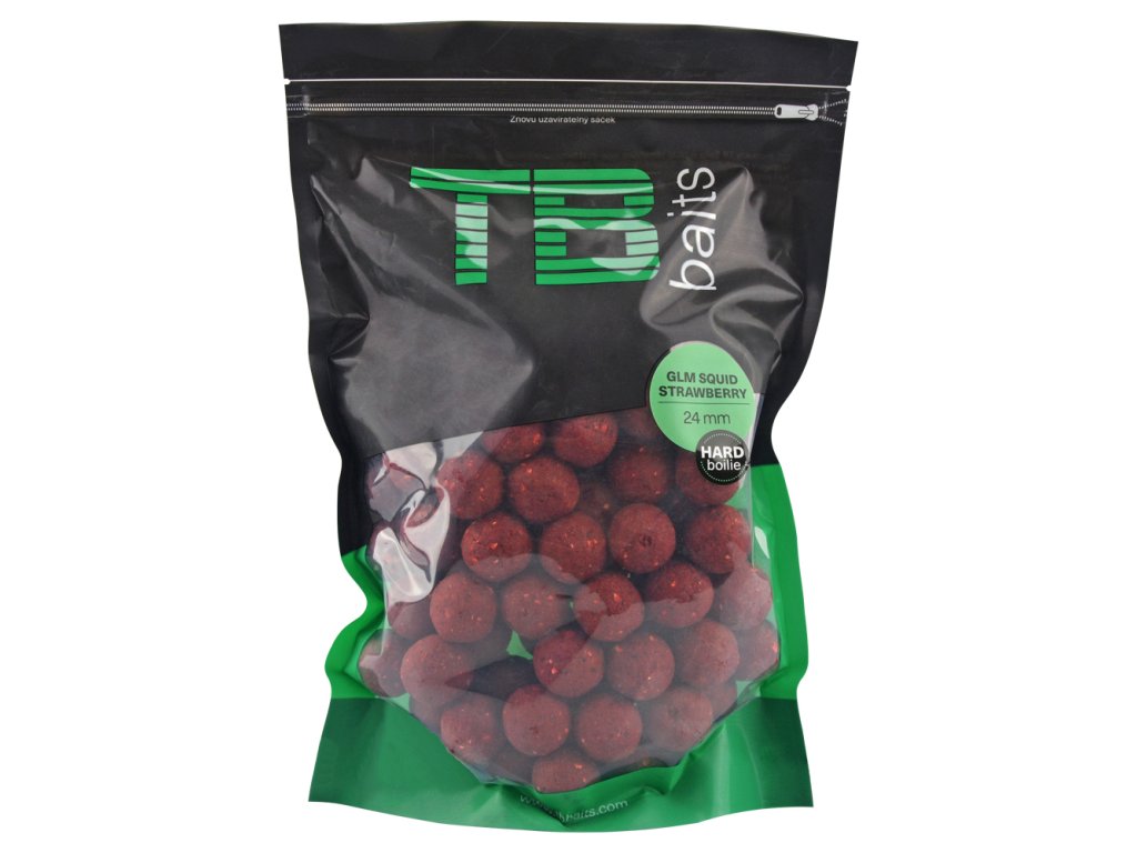 Boilie v tomto provedení je nejoblíbenější nástrahou a návnadou Tomáše Blažka. Pokud je vaším cílem kapitální úlovek, a ne počet úlovků, tak je pro vás boilie Hard ideální volbou. Po vhození do vody se nerozpadá, ale účinkuje okamžitě. Lze jej tedy použít i pro kratší vycházky a není pravidlem, že je nutné na záběr dlouho čekat. Příchuť GLM Squid Strawberry Toto boilie bylo první, které jsme vytvořili pod vlastní značkou TB Baits. S boiliem obdobných příchutí jsme měli vždy velmi dobré zkušenosti a Tomáš Blažek na něj ulovil v roce 2013 i svůj rekord, kterým byla slavná ryba s názvem Moby Dick o váze 35,8 kg na legendárním jezeře Lac du Der. O rok později se Tomášovi již na naše boilie GLM Squid Strawberry podařilo přelstít další gigantickou rybu o hmotnosti 33,6 kg.